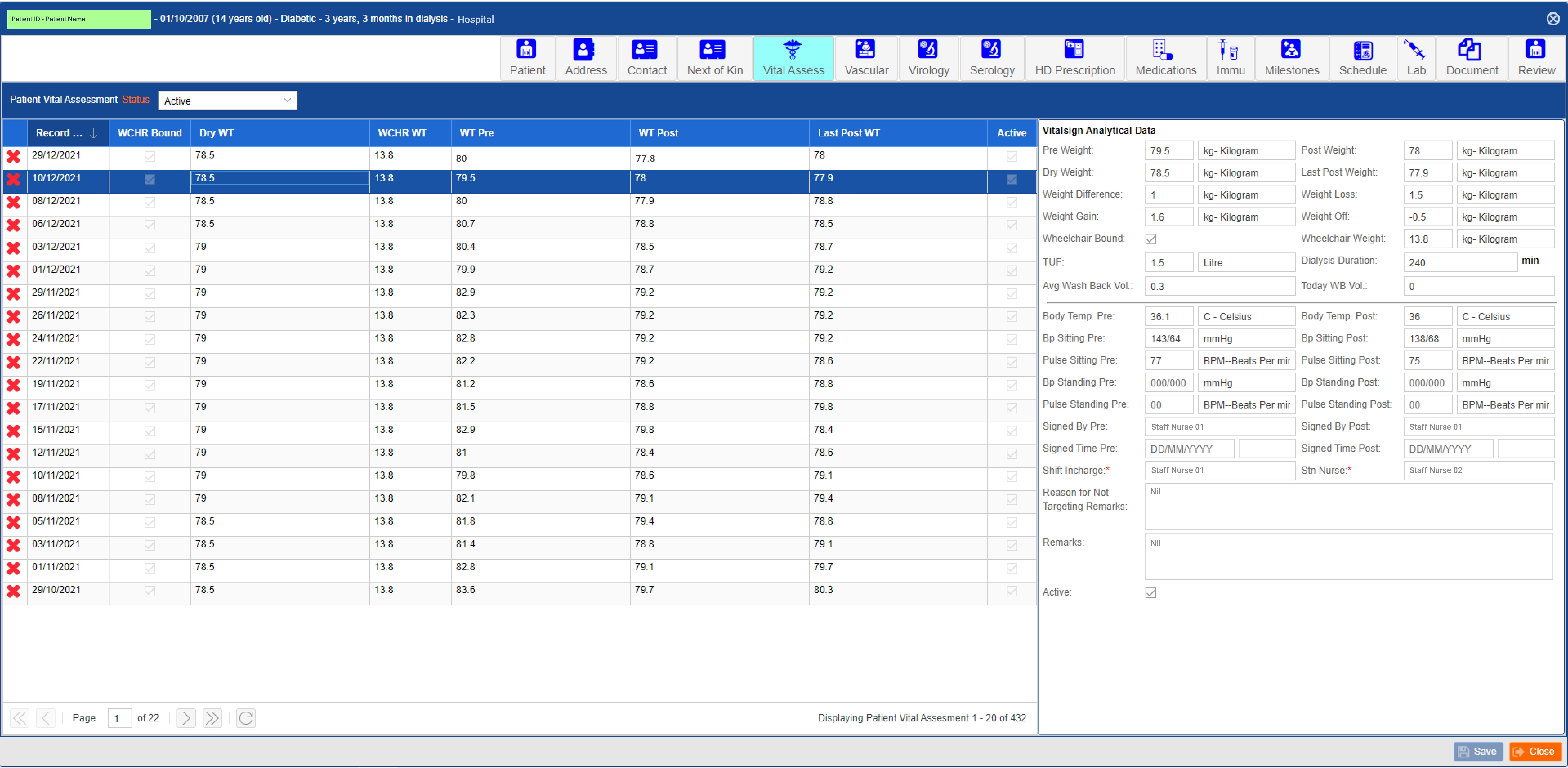 Post BP, Vital signs and Physical assessment are managed in post dialysis Assessment.